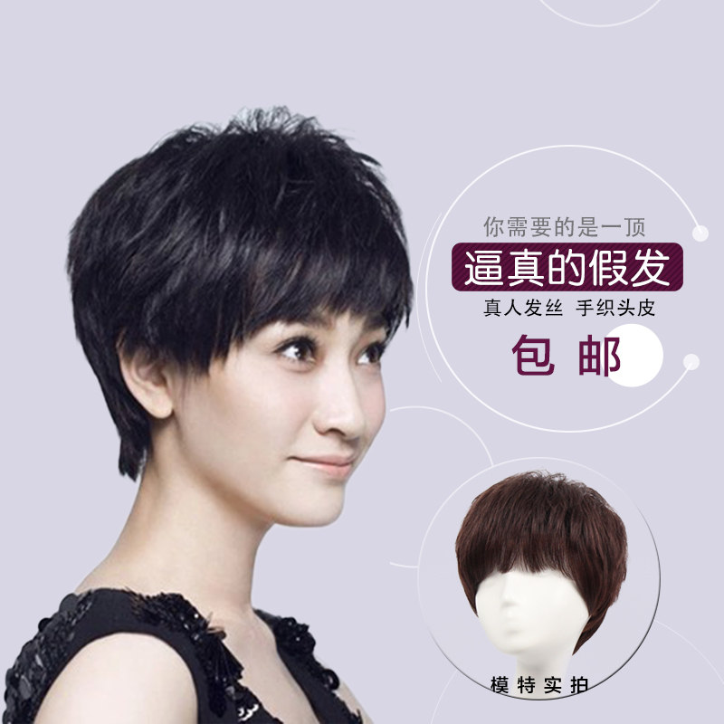 - 假发女 中老年 短发 真发