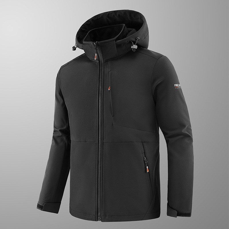 2025秋冬款 户外防风防水!加绒软壳冲锋衣连帽 男式休闲夹克外套