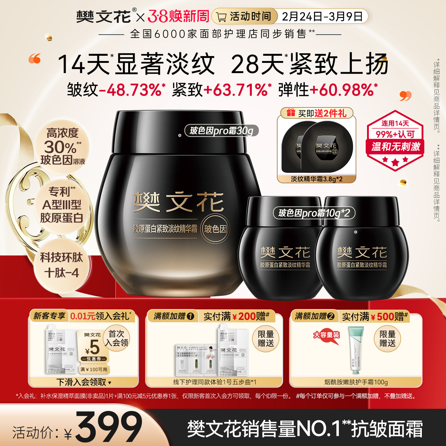 樊文花30%玻色因胶原Pro面霜保湿抗皱紧致淡纹冬季面霜旗舰店正品