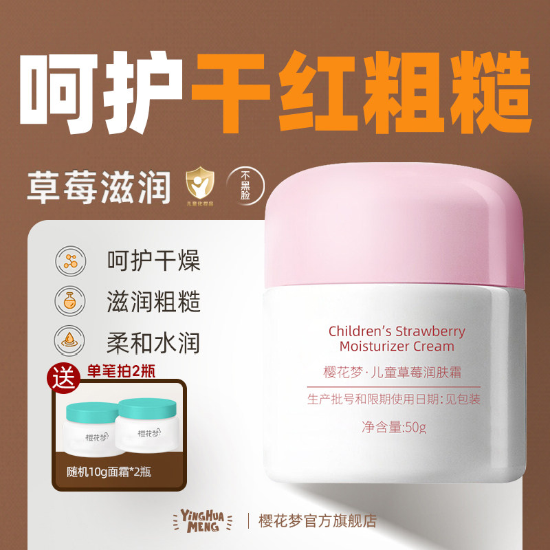 樱花梦儿童草莓润肤霜秋冬季面霜补水保湿呵护干红粗糙滋润霜国货