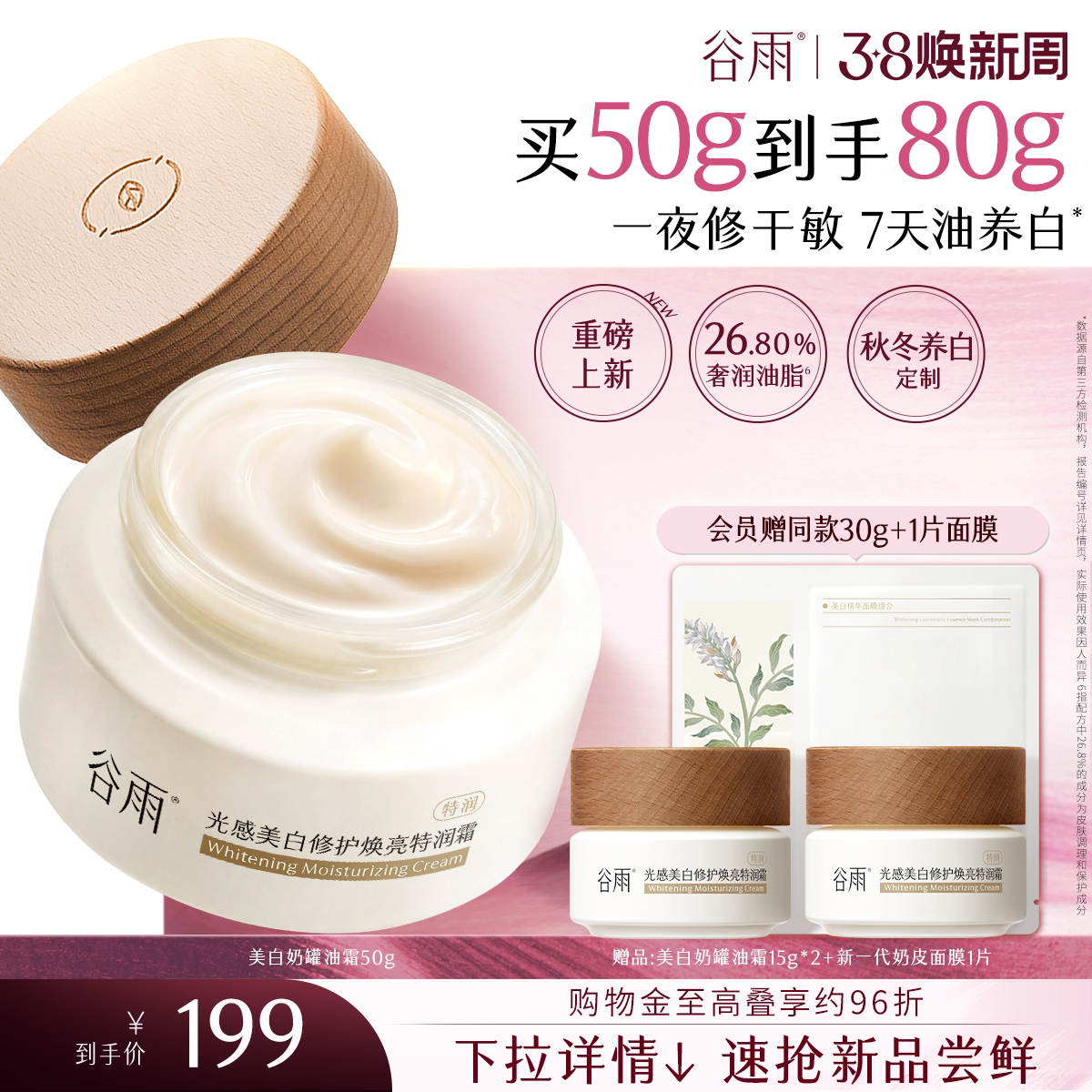 谷雨美白油霜奶罐春秋修护泛红滋润面霜淡斑补水干皮冬季以油养肤