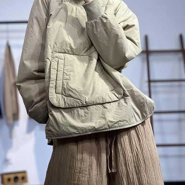 莫里冬季原创文艺日系韩版纯色套头棉服宽松休闲螺纹高领夹棉上衣
