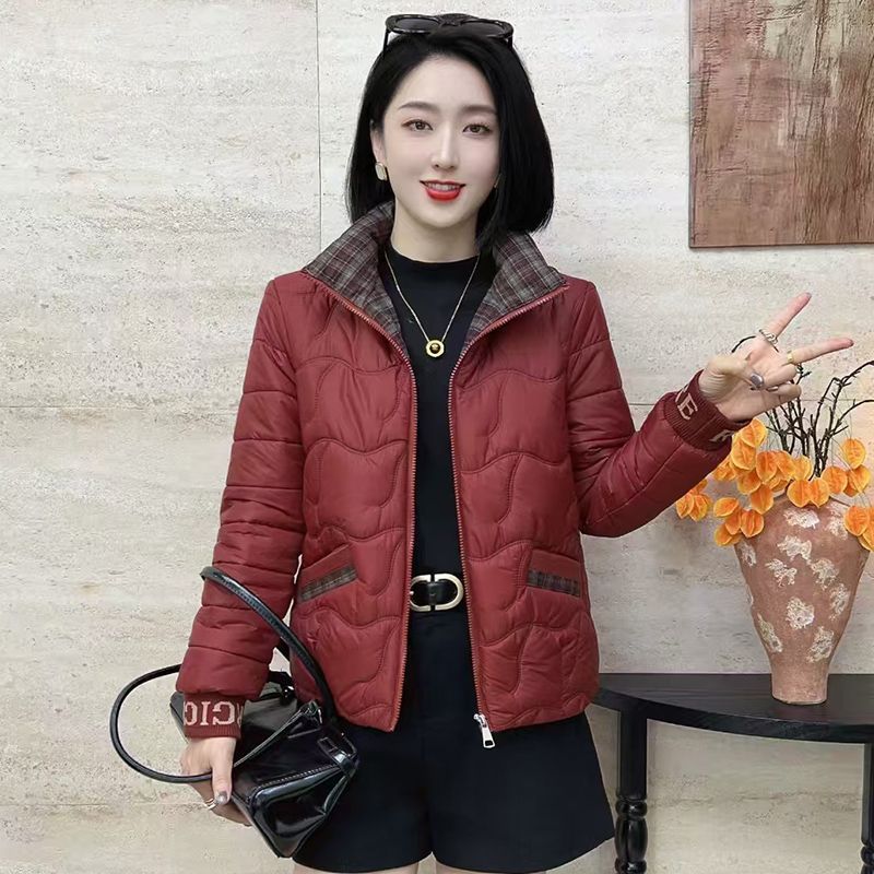 秋冬格子棉袄轻薄羽绒棉服外套女2025新款春秋立领休闲洋气小棉衣