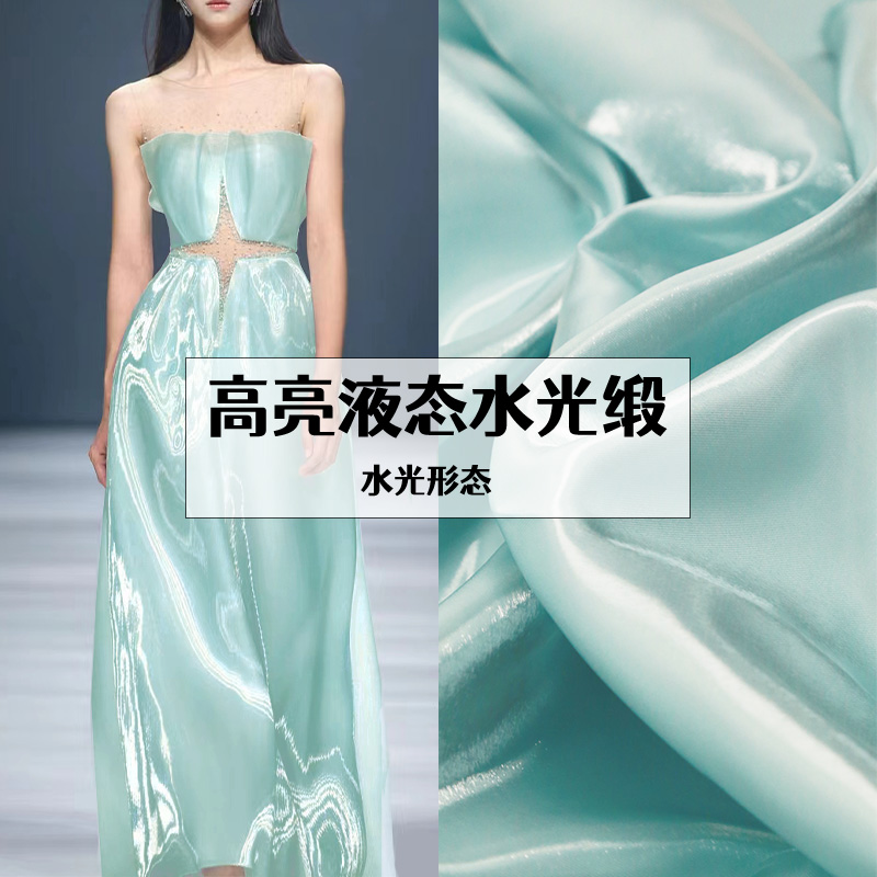 液态水光缎面料布料亮光连衣裙丝滑水晶丝缎反光礼服装设计师面料