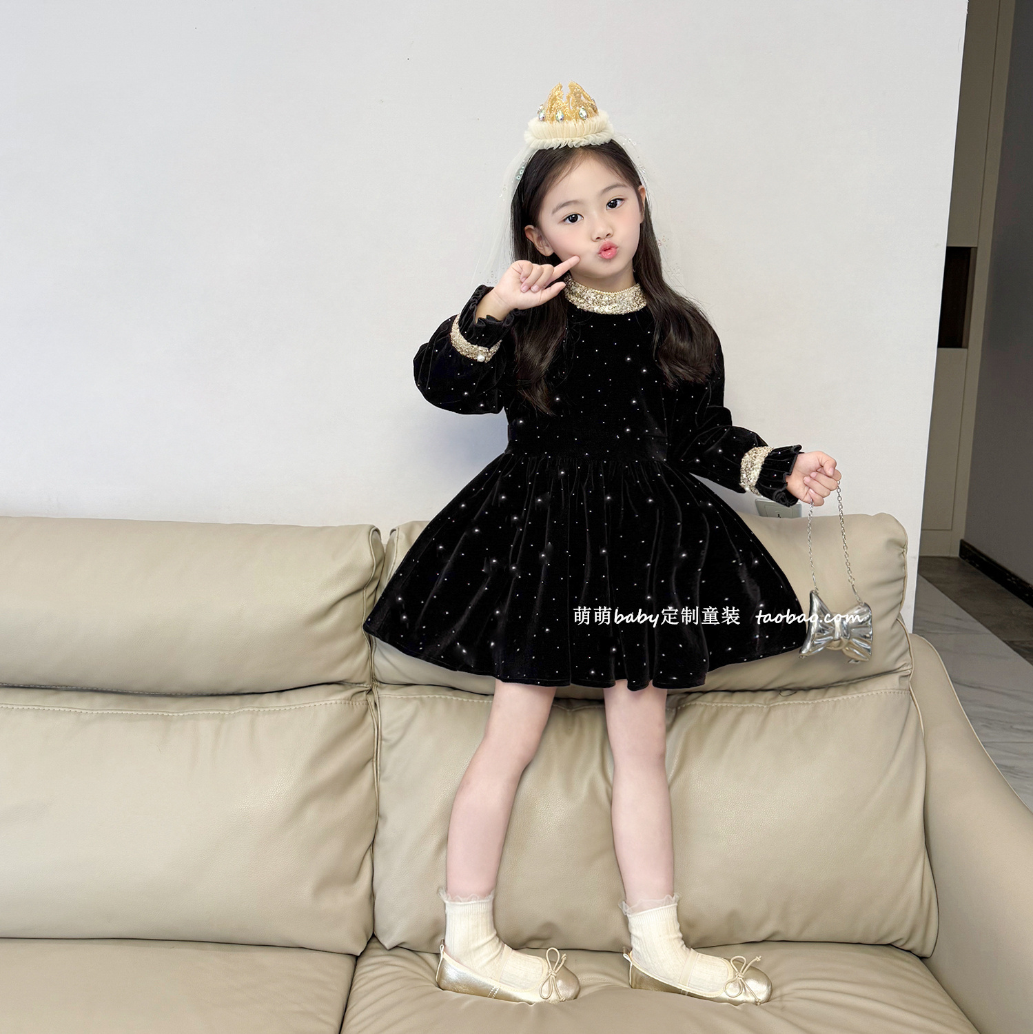 女童亮钻丝绒闪闪连衣裙2025秋冬新款女孩蓬蓬生日裙礼服裙公主裙