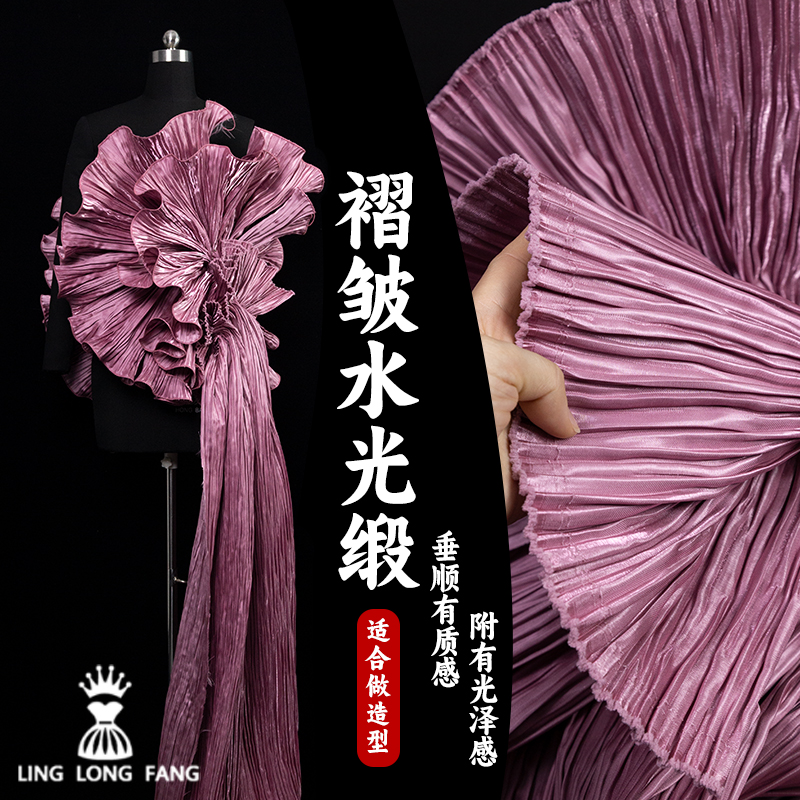 褶皱水光锻布料 亮光泽百褶造型挺阔礼服装连衣裙毕业设计师面料