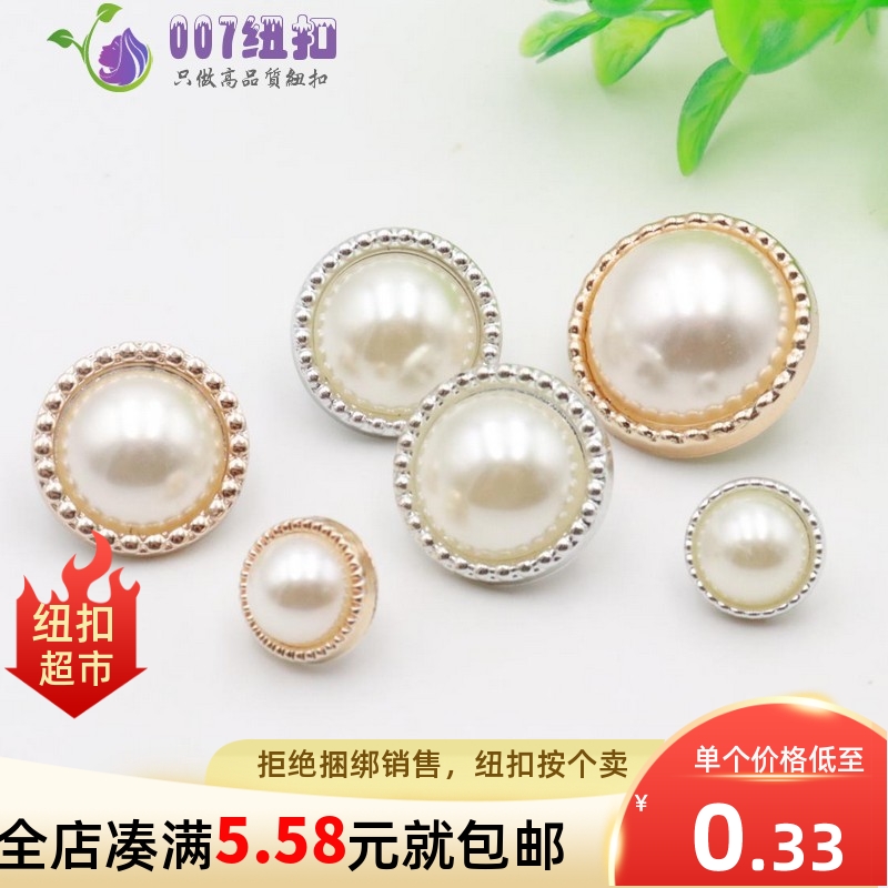 圆形金属珍珠纽扣扣子亮金色高脚手缝扣衬衫上衣连衣裙装饰扣钮扣
