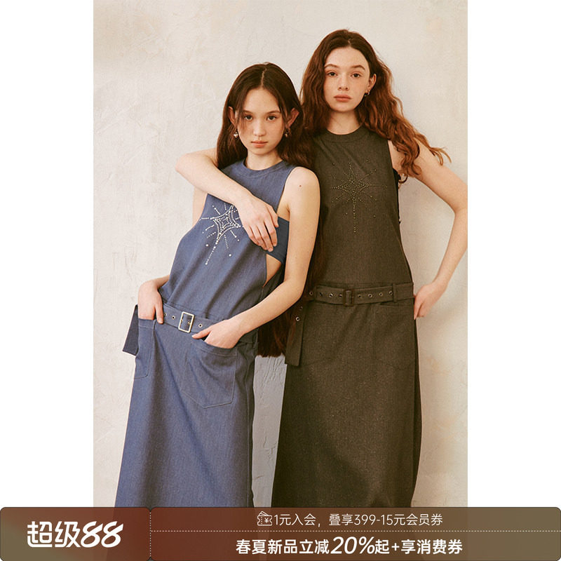 SylCue 轻熟御姐风性感心机大露背无袖连衣裙亮闪闪收腰百搭长裙