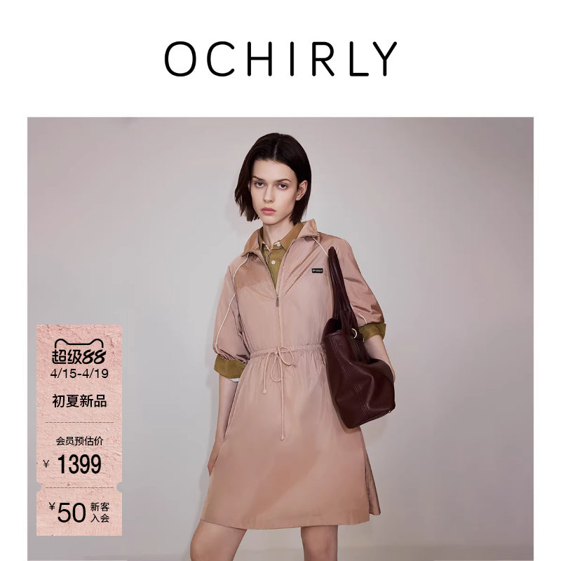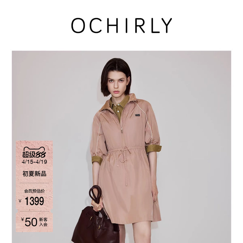 【新品】OCHIRLY欧时力 连衣裙2026夏季运动风轻薄亮光抽绳收腰*