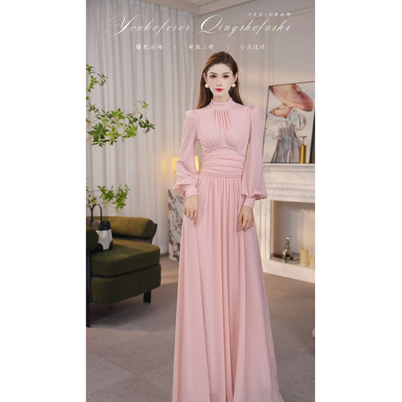SylCue 流金岁月时尚名媛亮闪闪褶皱修身长袖连衣裙百搭包臀长裙