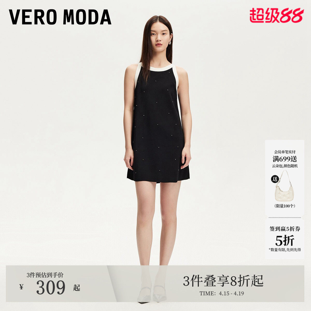 Vero Moda连衣裙夏季修身短款撞色亮钻装饰裙子325246007