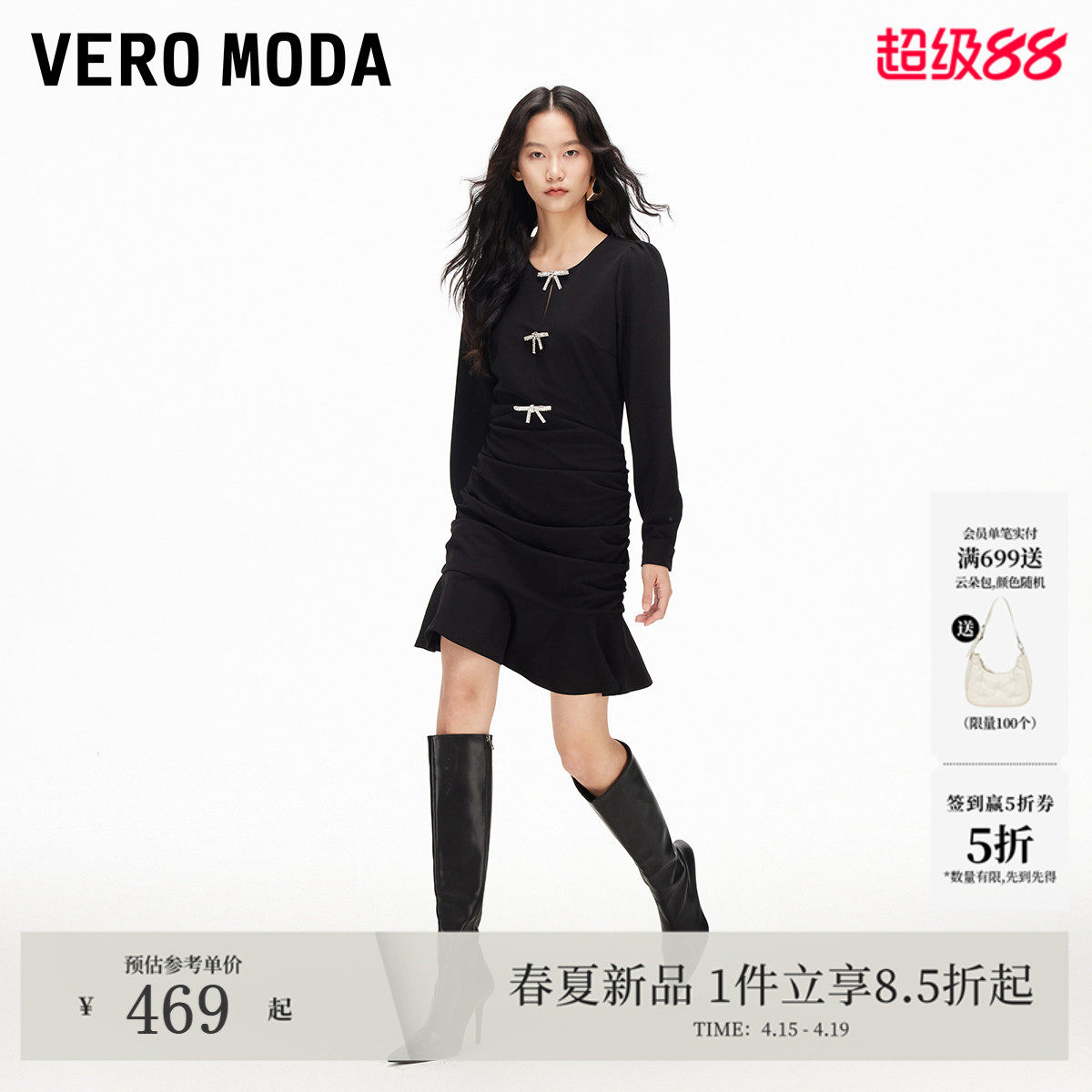 Vero Moda连衣裙2026春季新款镂空可拆亮钻蝴蝶结泡泡袖修身礼服