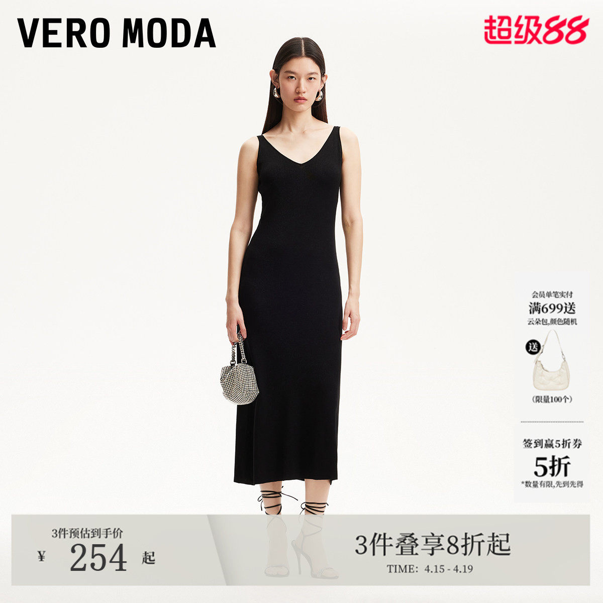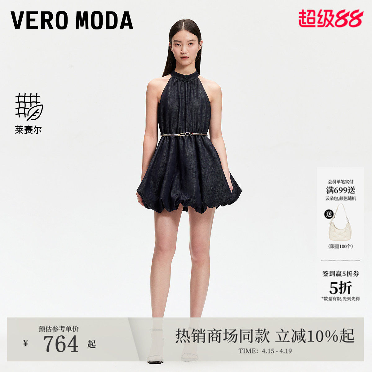 Vero Moda连衣裙2026春季新款可拆卸腰带亮闪面料挂脖裙326142001
