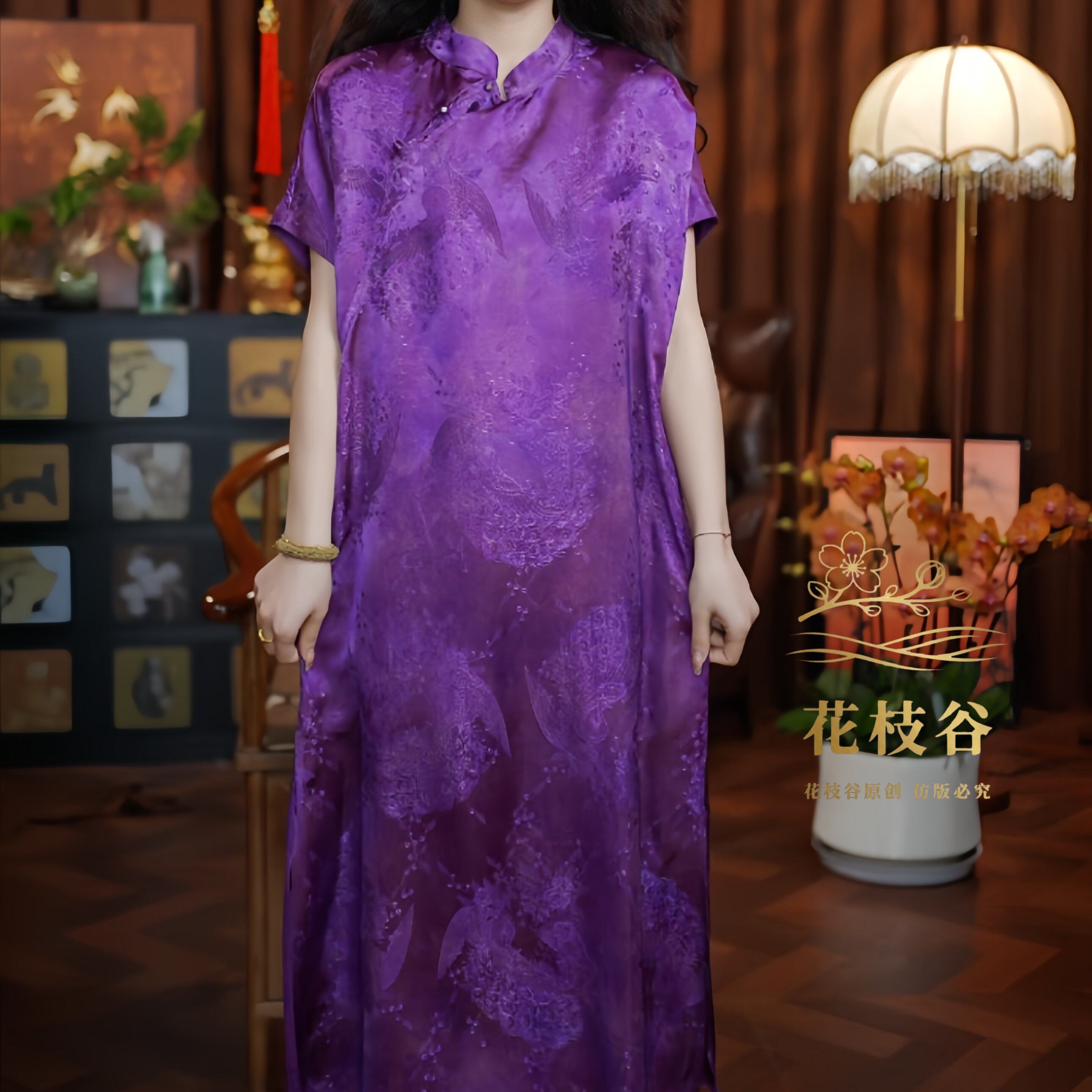 眸藏星海(亮紫色)2026新中式宽松短袖国风女装改良旗袍连衣裙