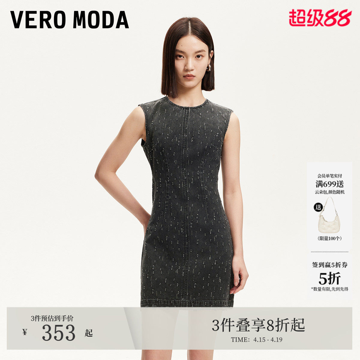 Vero Moda连衣裙夏季含棉磨破亮钻复古牛仔裙325242010