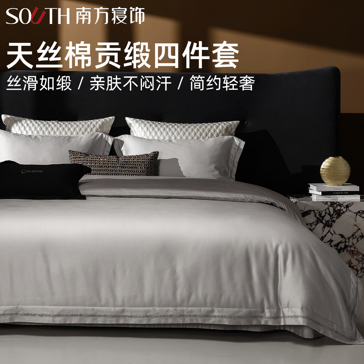 南方寝饰高档天丝棉床品四件套提花贡缎柔软亲肤四季床上用品套件
