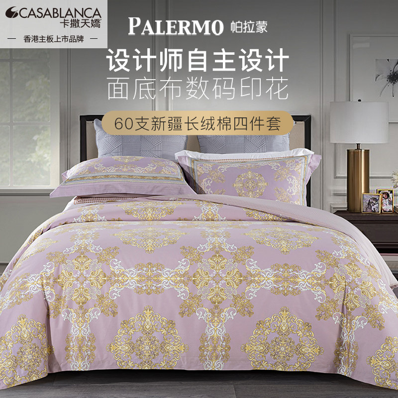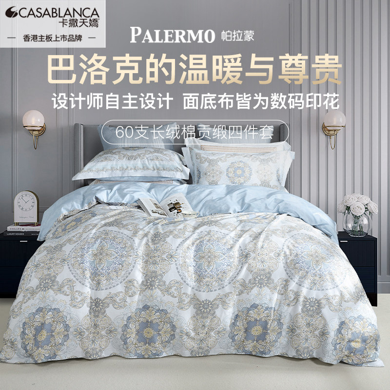 卡撒天娇60支长绒棉贡缎四件套欧式全棉纯棉四件套高档欧式床品