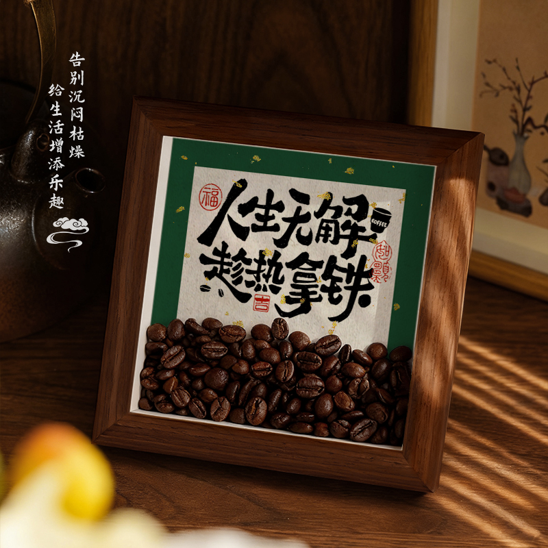 咖啡豆相框摆件收纳盒创意节日礼物吧台客厅卧室家居装饰画咖啡店