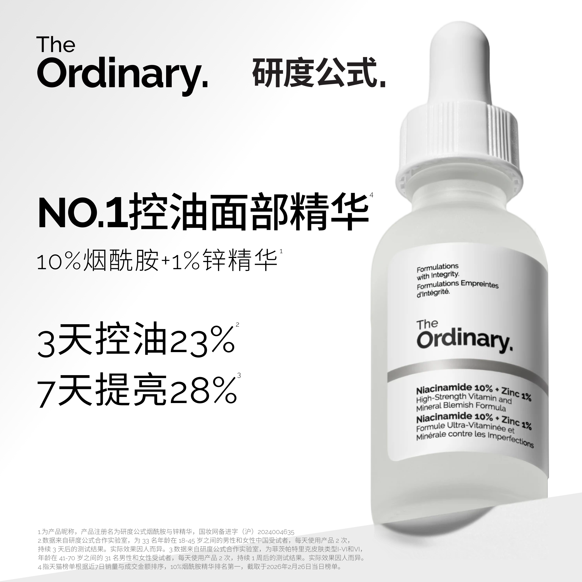 The Ordinary研度公式10%烟酰胺与1%锌精华控油祛痘提亮油皮男女