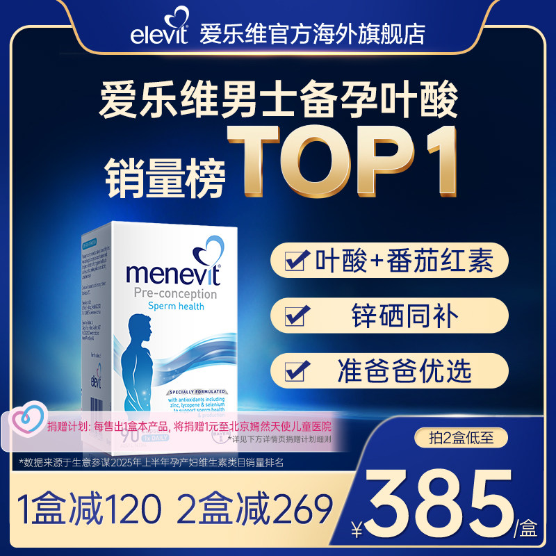 【旗舰店】爱乐维Menevit男士备孕复合维生素叶酸含锌硒番茄红素