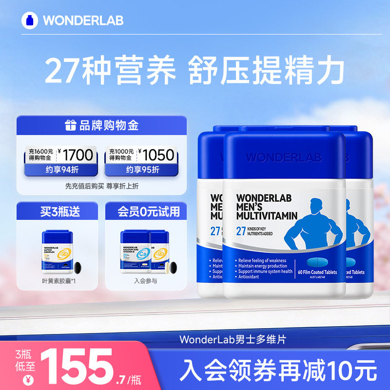 WonderLab男士复合维生素多维复合维生素B族补硒锌片南非醉茄男性