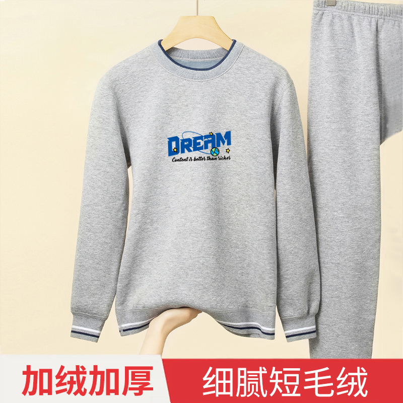 男士加绒加厚保暖内衣套装冬季青少年学生打底棉毛衫防寒秋衣秋裤