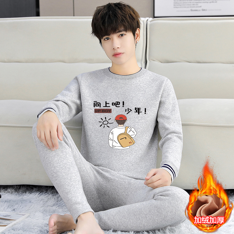 男士加绒加厚保暖内衣套装青少年学生秋衣秋裤一套防寒打底棉毛衫
