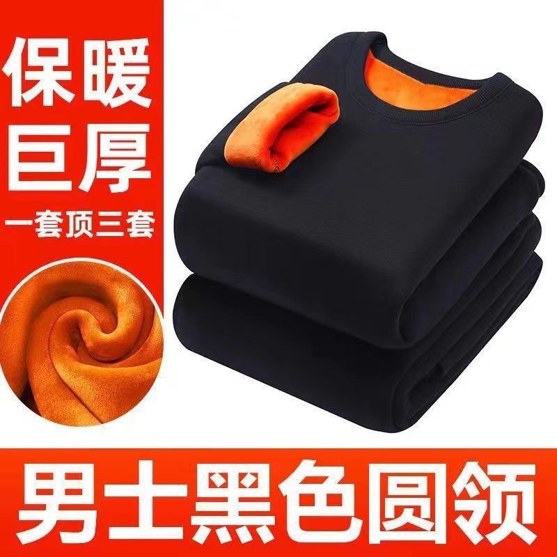 男士加绒加厚保暖内衣套装冬季纯色保暖套装圆领加厚秋衣秋裤冬季
