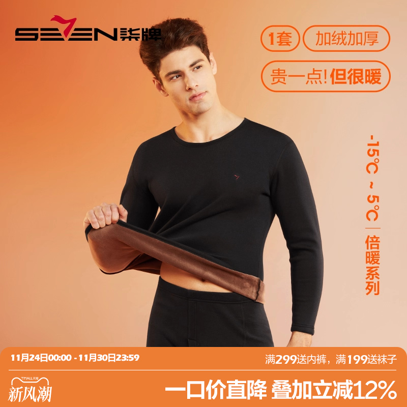2套七匹狼男士加绒加厚保暖内衣套装秋冬季男款打底防寒秋衣秋裤
