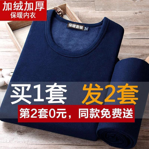特价清仓冬季男士加绒加厚保暖内衣中冬天老年人套装中高领秋衣秋