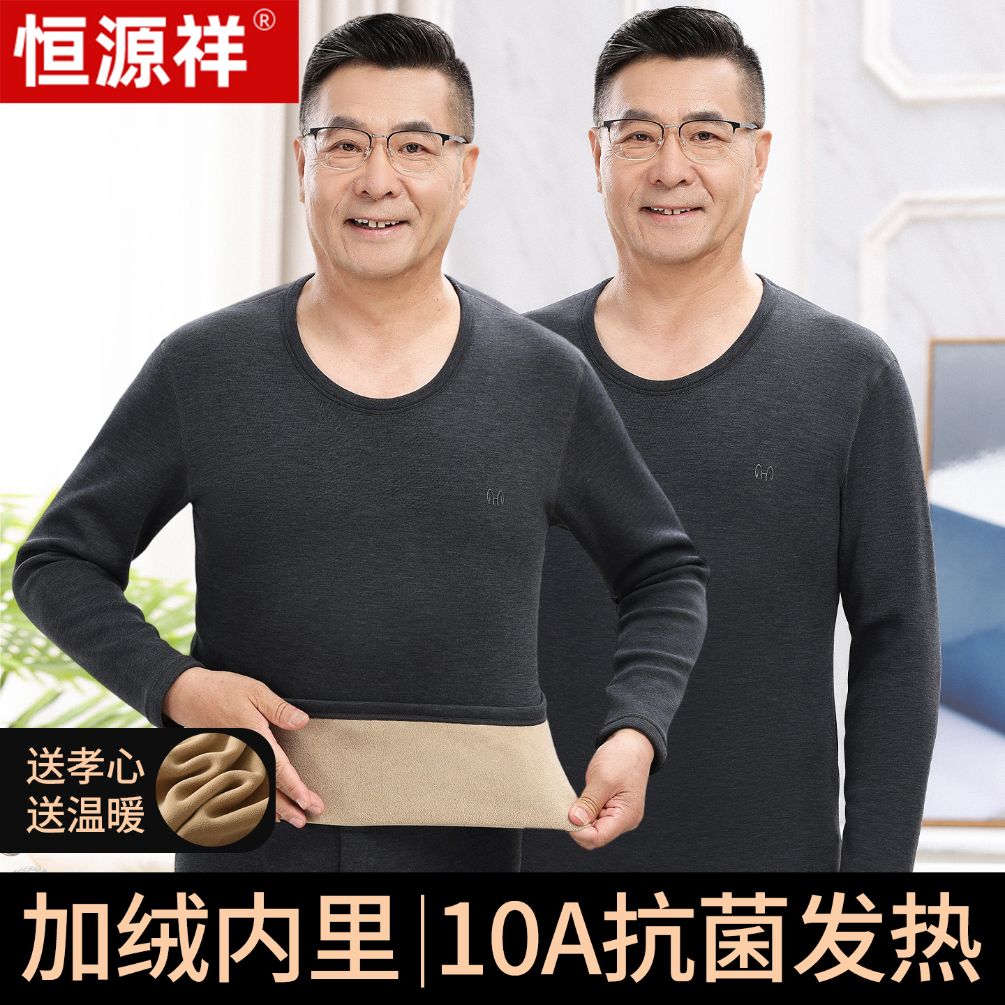 恒源祥冬季男士加绒加厚保暖内衣套装中老年爸爸抗菌发热秋衣秋裤