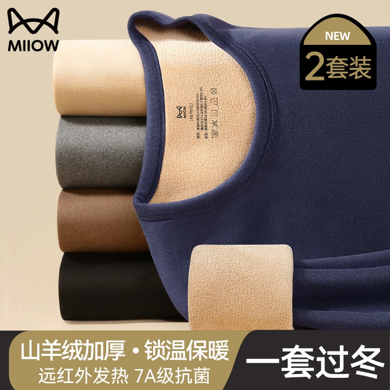 猫人男士加绒加厚保暖内衣发热男款防寒羊绒秋衣秋裤套装冬季0081