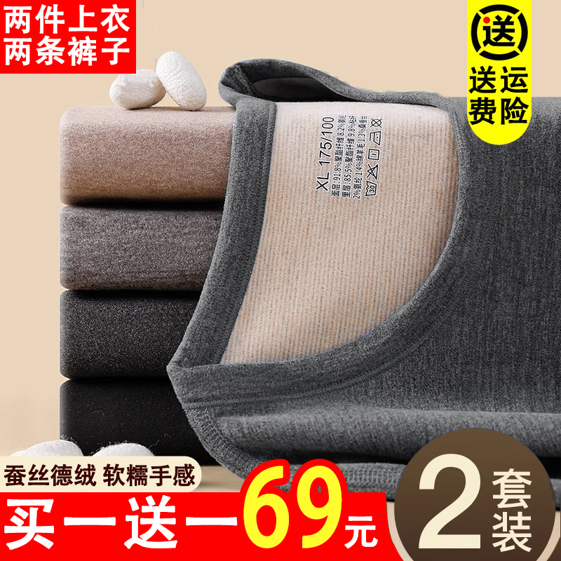 古今秋衣秋裤男士加绒加厚保暖内衣套装羊绒蚕丝圆领亲肤棉毛衫冬