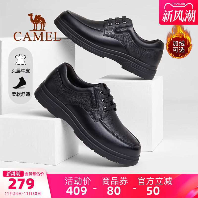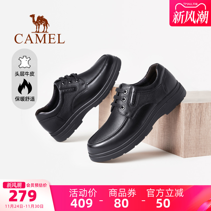 骆驼男鞋冬季2025新款牛皮商务休闲加绒皮鞋男士中年爸爸保暖棉鞋