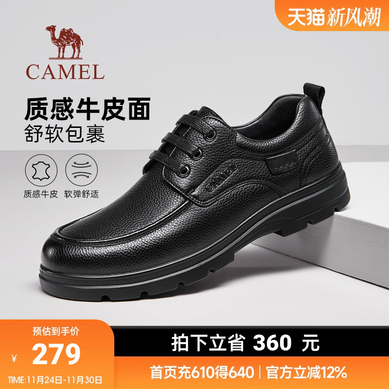 骆驼官方店男鞋2025秋季新款休闲皮鞋男真皮软底商务中年人爸爸鞋