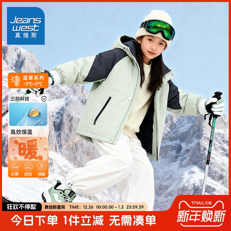 真维斯童装女童冬季外套女大童加厚保暖冬装棉服儿童户外冲锋衣冬