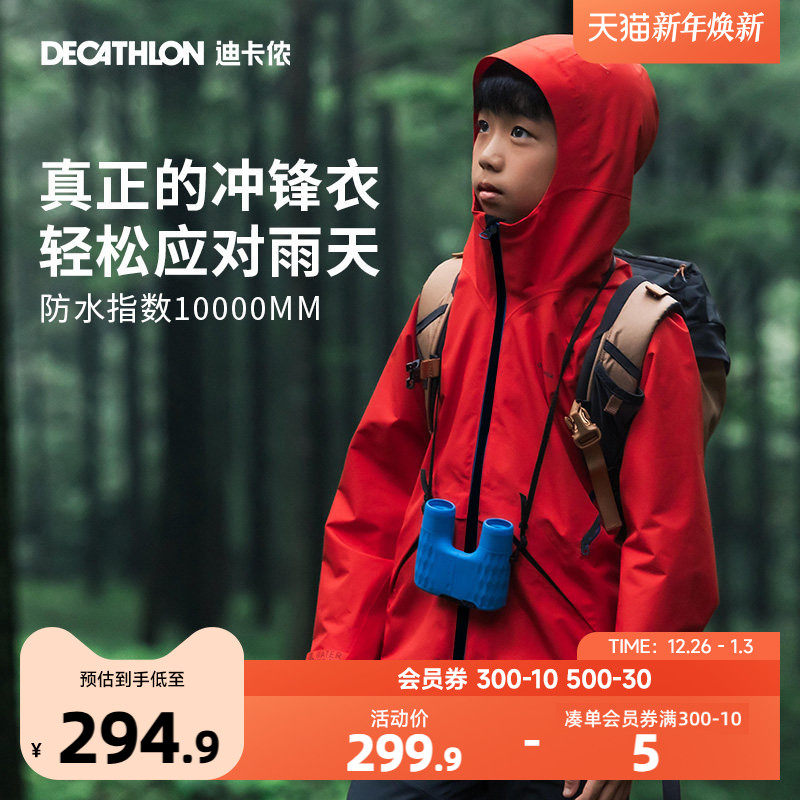 迪卡侬儿童户外冲锋衣男女童户外MH900秋季防水防风保暖外套KIDS