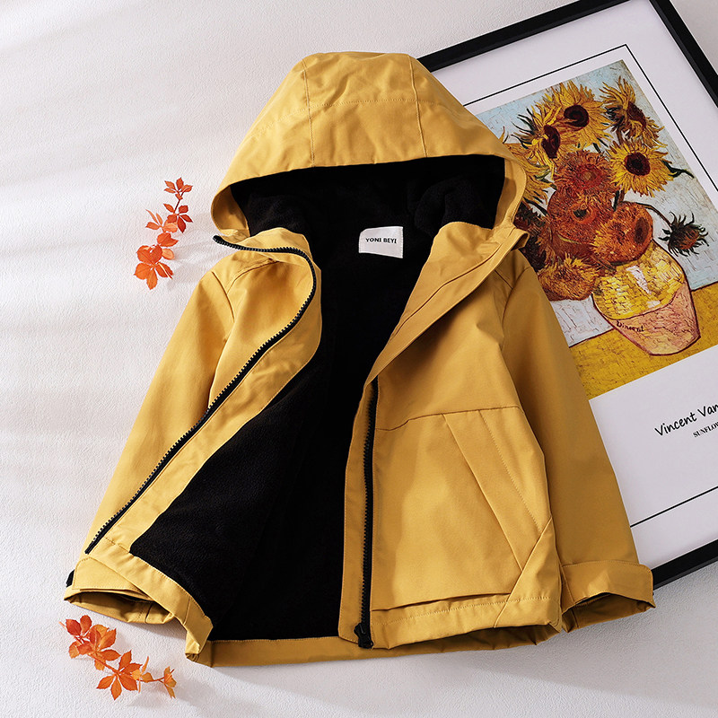 Yumi妈儿童户外冲锋衣男女童休闲宽松防风连帽外套上衣 25A039
