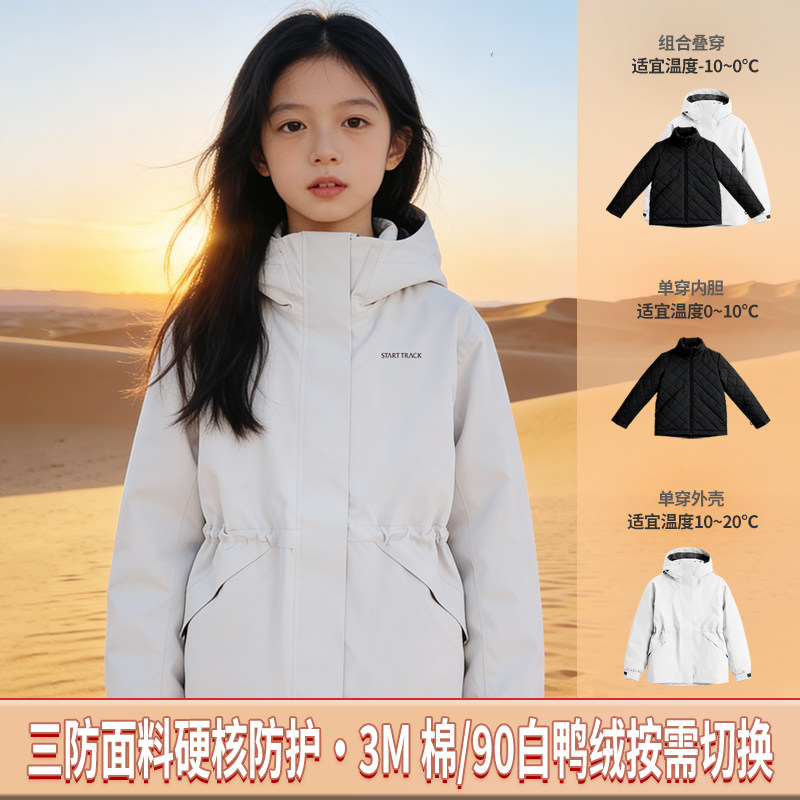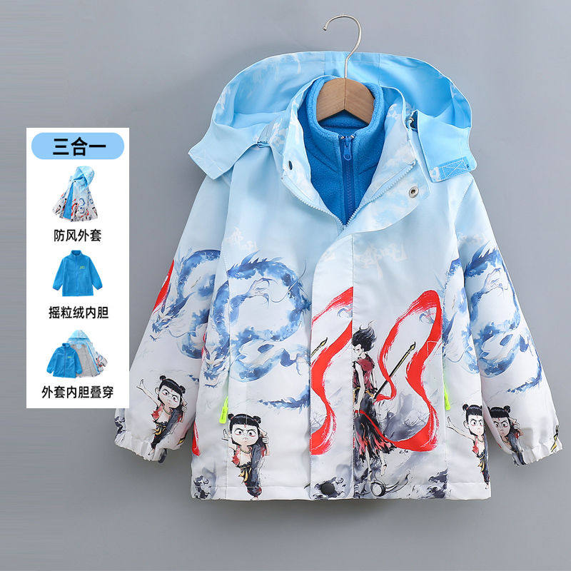 斯博兰帝儿童户外冲锋衣三合一可拆卸男童俩件套加厚保暖秋冬外套