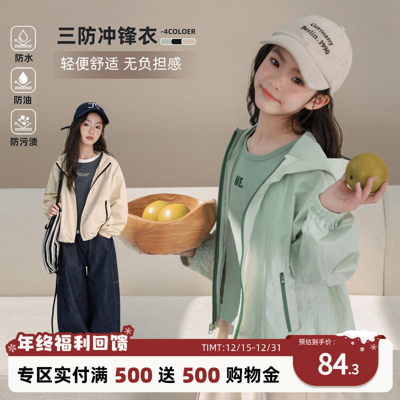 2025秋装新款中大童上衣儿童户外冲锋衣女童休闲宽松防风连帽外套