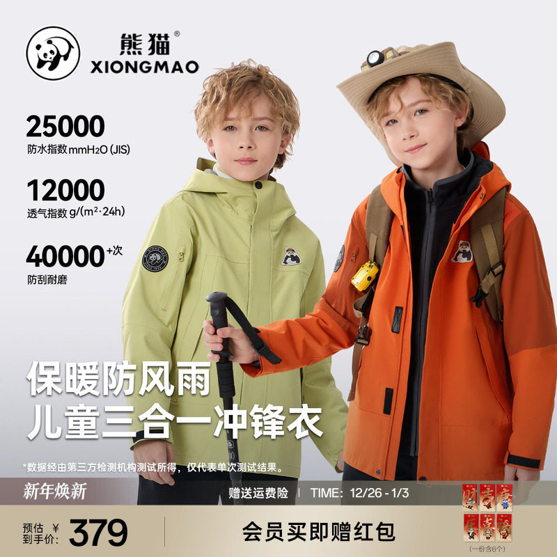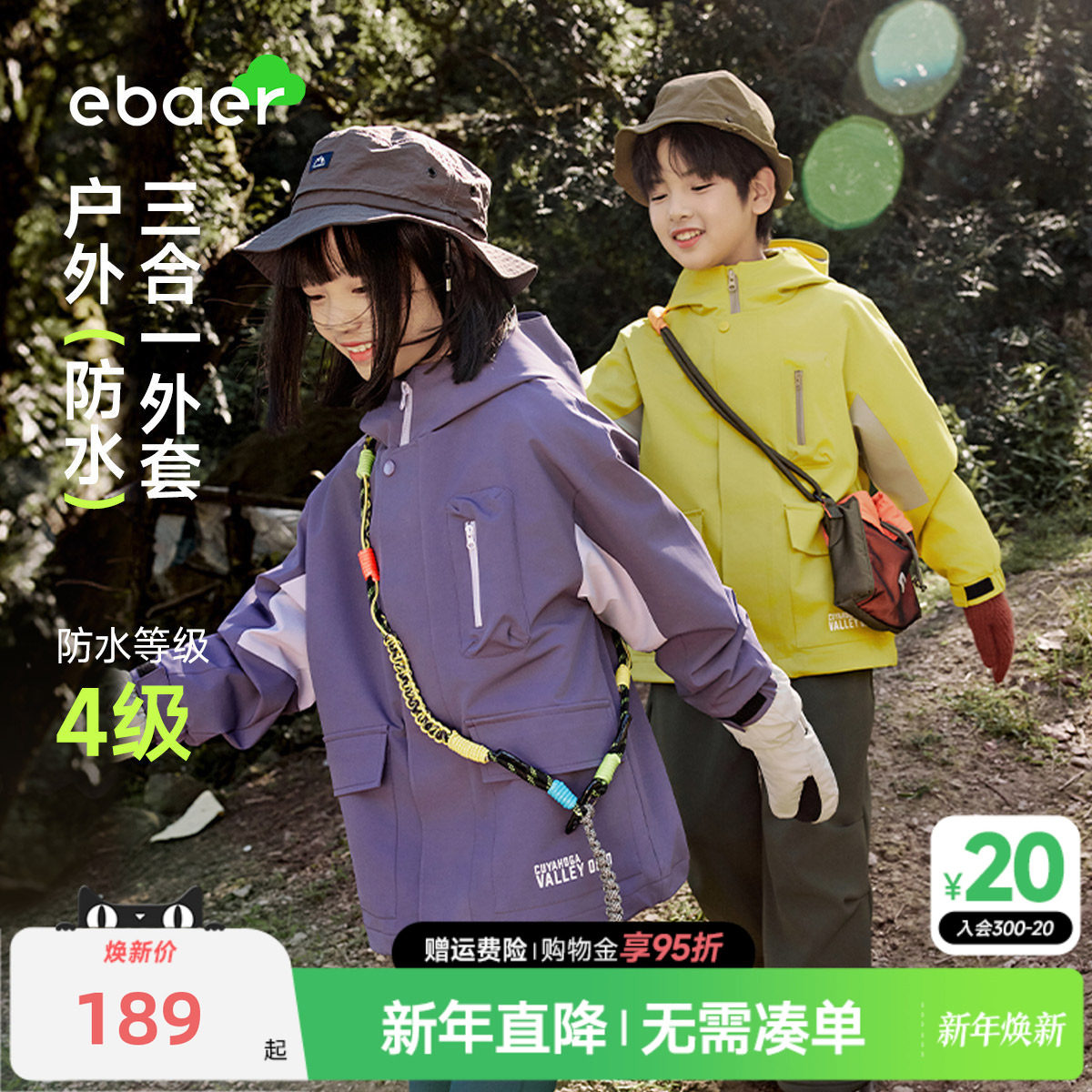 EBAER儿童三合一冲锋外套2025冬装款新款男女童户外防水抓绒上衣