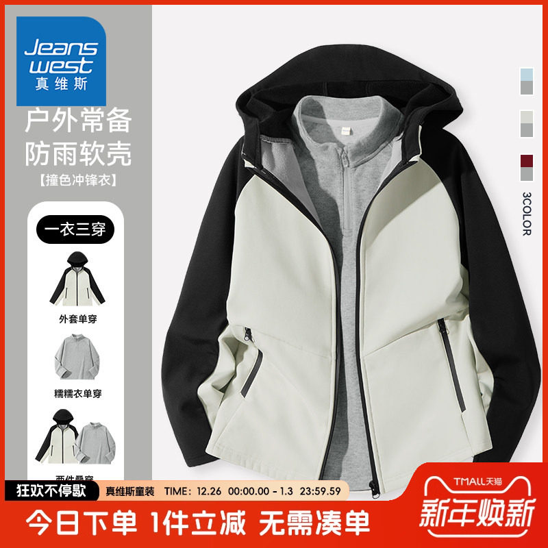 小象汉姆男童冲锋衣软壳外套三防秋冬装2025新款儿童户外服三合一