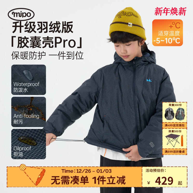 mipo冬季儿童冲锋羽绒服三防运动男女童户外防风防水保暖鸭绒上衣