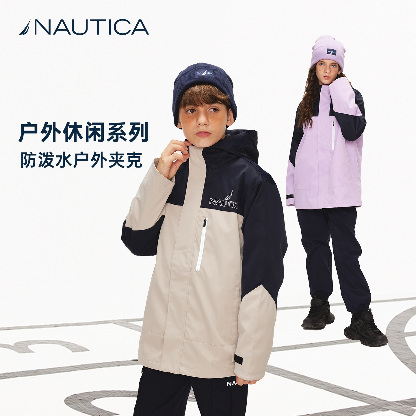NAUTICA儿童户外冲锋衣2025新款男女童装秋冬防水外套中大童上衣