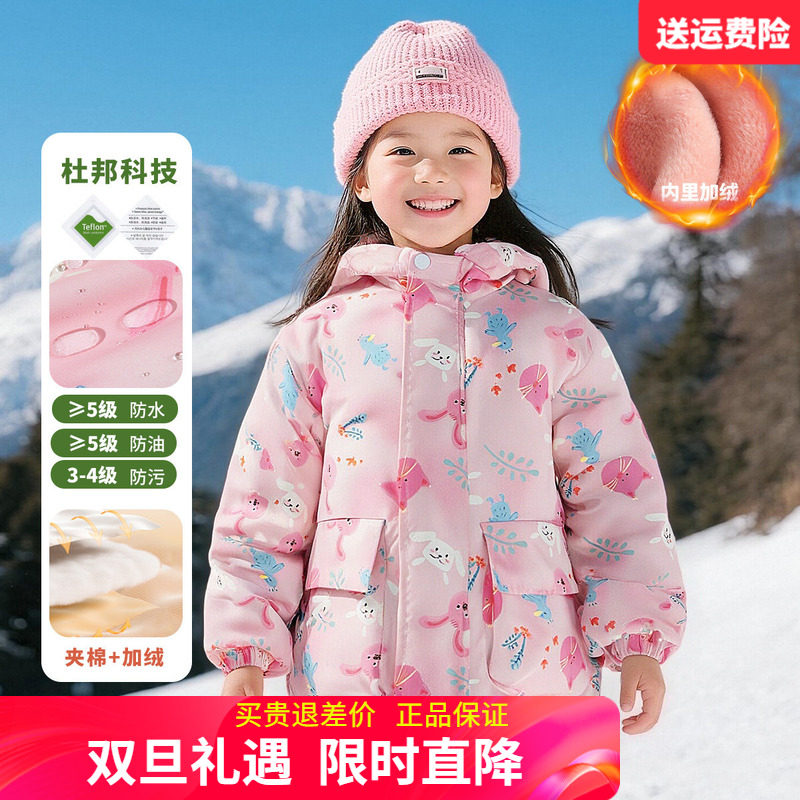 班尼路童装女童棉服秋冬款儿童户外冲锋衣女大童加厚保暖运动外套