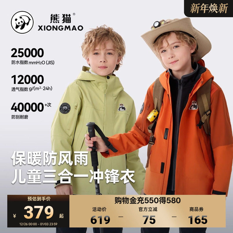 诺帝卡儿童户外冲锋衣三合一2025秋冬新款男童女童登山服防水外套