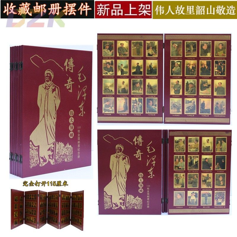 传奇毛主席选集 188枚金箔彩金邮票红色经典邮票集邮册木艺摆件