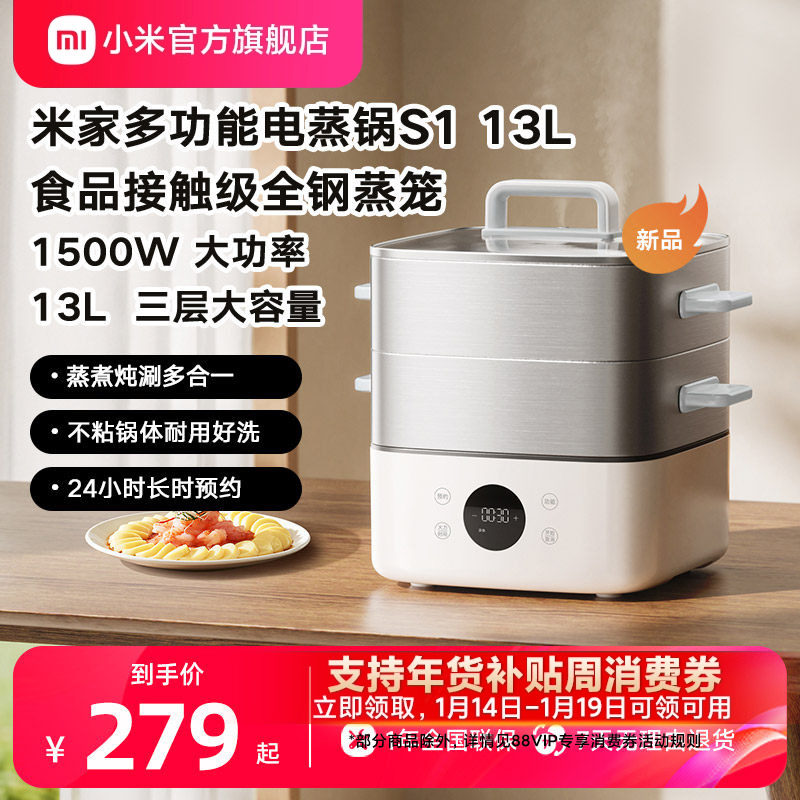 小米官旗米家电蒸锅13L早餐机电煮锅电火锅多功能锅家用大容量
