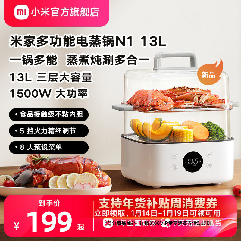 小米官旗米家电蒸锅13L早餐机电煮锅电火锅多功能锅大容量炖可视