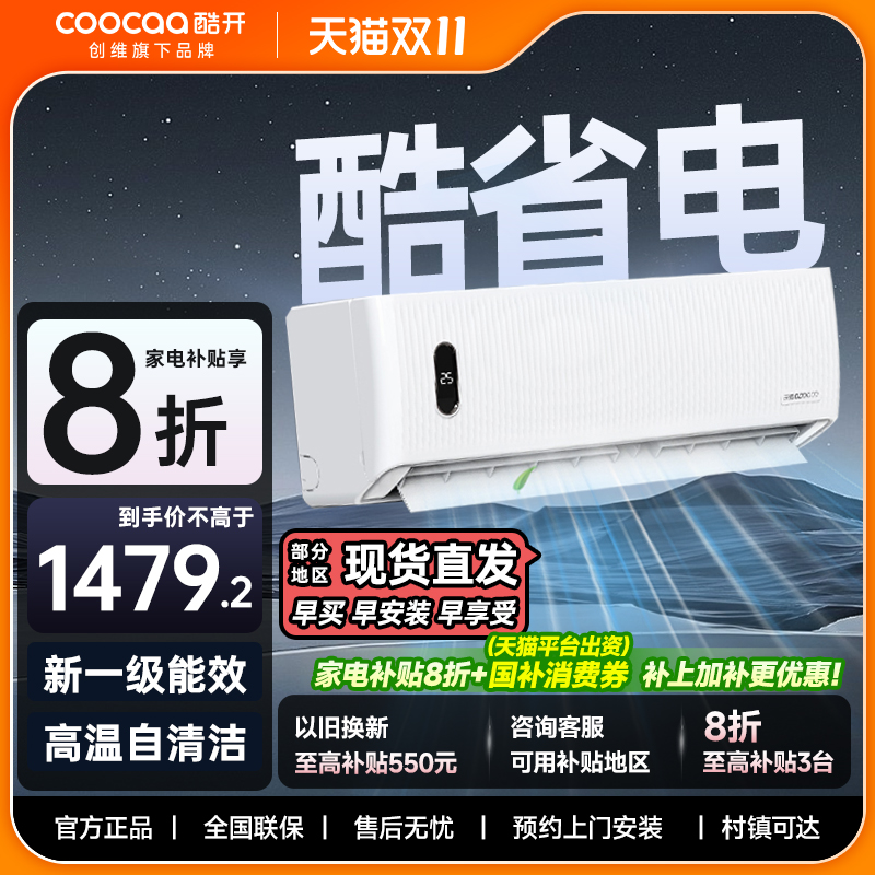 创维酷开酷省电空调一级能效1匹1.5匹2匹挂机新家电以旧换新补贴